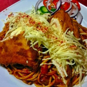 Rántott csirkemell rizzsel, tartármártással